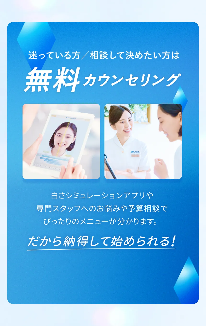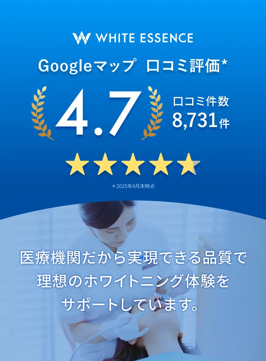 ホワイトエッセンスの薬剤は、効果・安全性・継続しやすさを追求しているため、継続いただきやすく、ブリーチシェードの白さが目指せます。